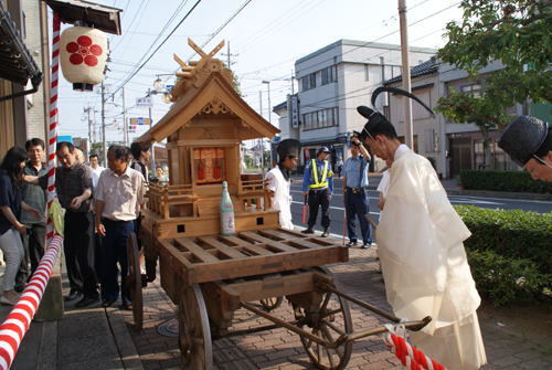 | 飾宿の林宅にて枠組み金屏風が完成。 鬼と三蔵法師を運び込みます。 | |