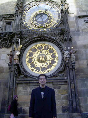 ドボルザークホール前の銅像前にて。 5日14時14分 |