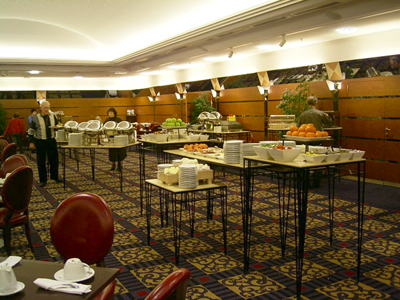 宿泊ホテル「ルネッサンス」の バイキング朝食。5日7時35分 |