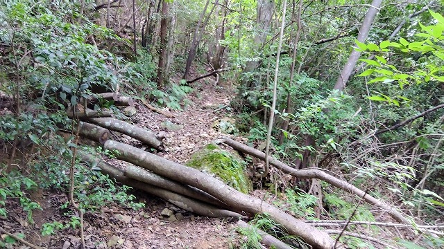 | ここら辺で道がわからなくなった!12時59分 | 1時間11分迷ってここに下山。「雲見峠入口」14時12分 |