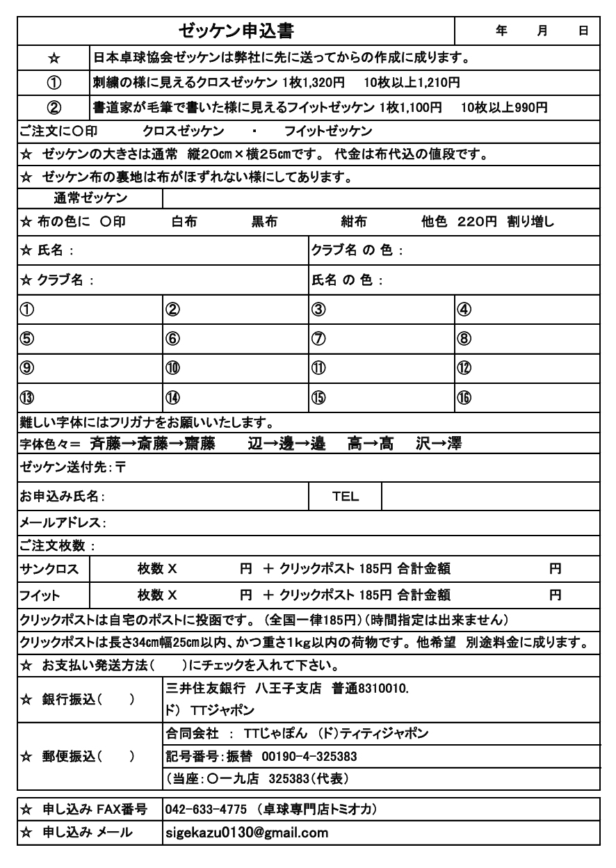 | 上記のファイルに記入してメール又はFAX 042-633-4775 に送信お願いします。 | ||||